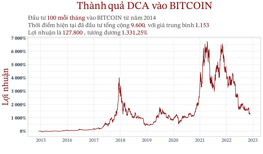Đầu tư vào Bitcoin thật sự rủi ro. Tại thời điểm 2021, chúng ta đã lời hơn 6500% so với số tiền bỏ ra nhưng hiện tại "chỉ còn" lời 1500%.