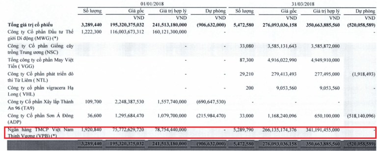 Hestia nắm giữ 5,3 triệu cổ phiếu VPB, tương đương 97% danh mục vào cuối quý 1.