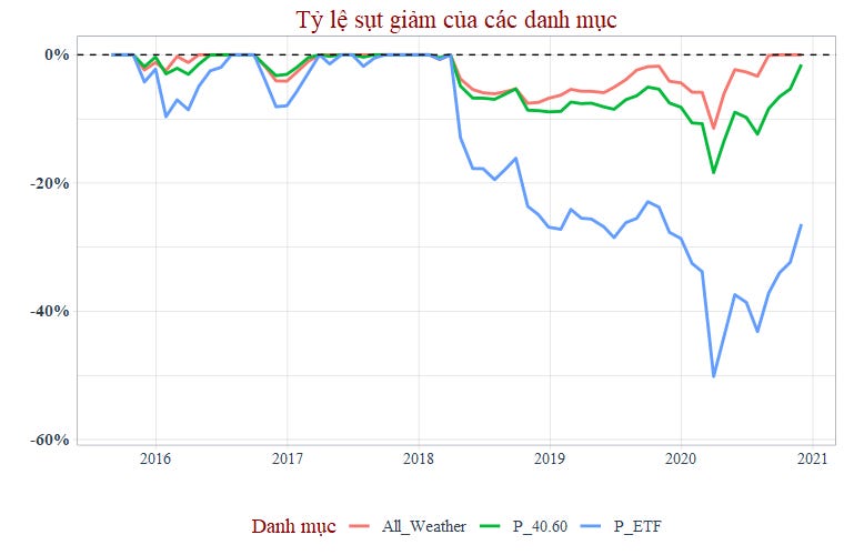 Tôi xem xét tỷ lệ sụt giảm vốn drawdowns của các danh mục thì thấy: