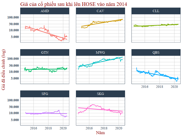Dữ liệu tôi lấy là các cổ phiếu được niêm yết lần đầu trên HOSE từ năm 2014 đến 2018, không bao gồm các cổ phiếu chuyển sàn. Hiện tại tôi chỉ làm trên HOSE, không làm trên HNX và UPCOM. Lý do là vì tôi làm tới đâu viết tới đó, chưa rõ xu hướng như thế nào và có cái gì đáng ghi nhận không nên tốt nhất làm với mẫu dữ liệu nhỏ trước.