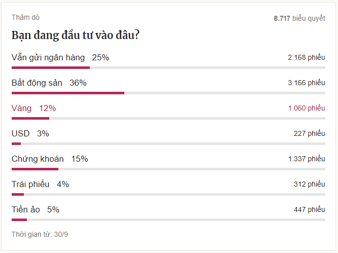 Hôm qua tôi có đọc được một bài viết trên Vnexpress về việc nên đầu tư vào đâu để sinh lời. Bài viết giới thiệu nhiều loại hình đầu tư như: gửi tiết kiệm, ngoại hối, vàng, bất động sản, trái phiếu, tiền ảo...