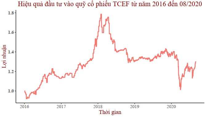 Giả định như ở bài viết trước, đó là một nhà đầu tư năm 2016 muốn đầu tư vào quỹ mở cổ phiếu TCEF này do anh quá bận bịu đi làm. Và thế là thành quả của anh nhận được như sau: