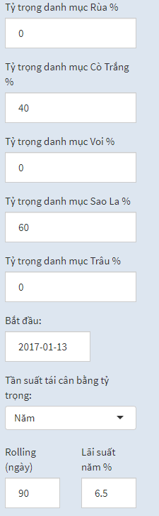 Tần suất tái cân bằng tỷ trọng danh mục: Tự động tái cấu trúc theo: Năm, Quý, Tháng và Tuần.