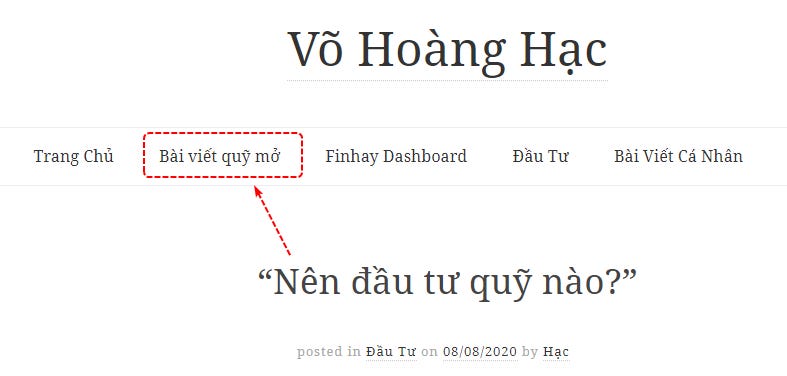 Tổng hợp các bài viết tôi từng viết về việc đầu tư mua chứng chỉ quỹ mở trên thanh menu.