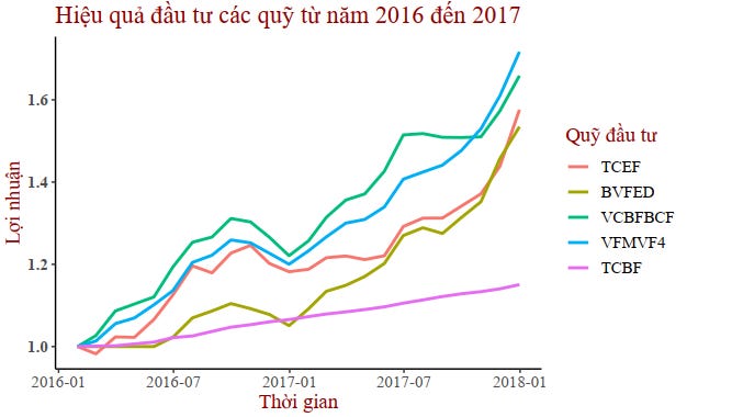Nhưng trước đó, ta xem thử TCBF như thế nào với các quỹ cổ phiếu trên từ năm 2016 đến 2017.