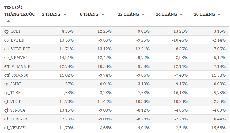 Trong khi đó quỹ cổ phiếu của TCB (TCEF) và Bảo Việt (BVFED) mang lại tỷ suất sinh lợi thấp hơn hẳn (BVFED hoạt động vào tháng 05/2016).