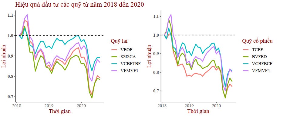 Nếu tôi lấy năm 2018 làm mốc, thì tất nhiên lợi nhuận của các quỹ cổ phiếu, quỹ lai, ETF sẽ âm và rủi ro còn cao hơn các quỹ trái phiếu nhiều.