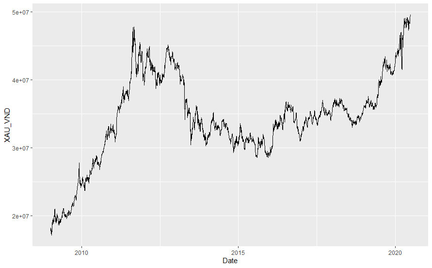 Do dữ liệu giá vàng nội địa không thể lấy được cho nên tôi đánh phải tính giá vàng gián tiếp bằng cách sử dụng giá XAU/USD * Tỷ giá USD/VND * 1,2057.