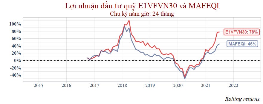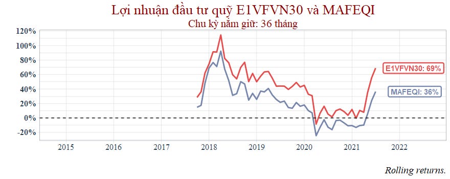 Thời gian nắm giữ càng dài thì ETF càng cho thấy sử vượt trội so với MAFEQI.
