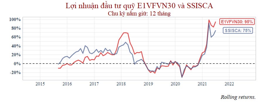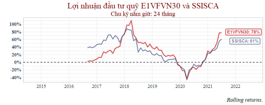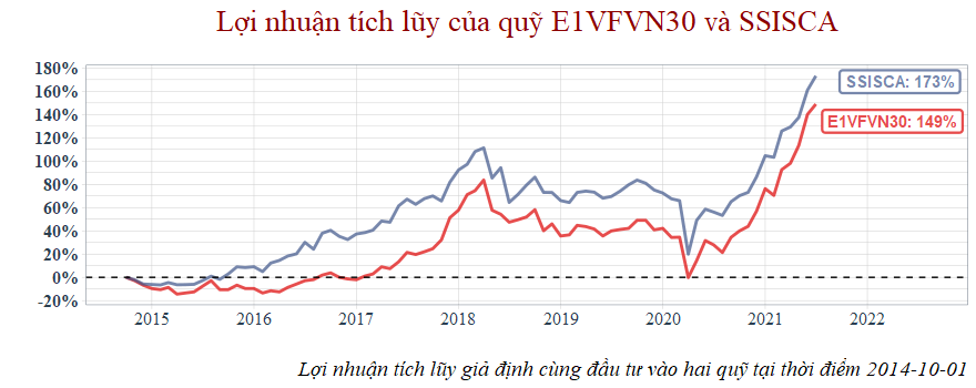 Tiếp tục so sánh ETF E1VFVN30 với SSISCA
