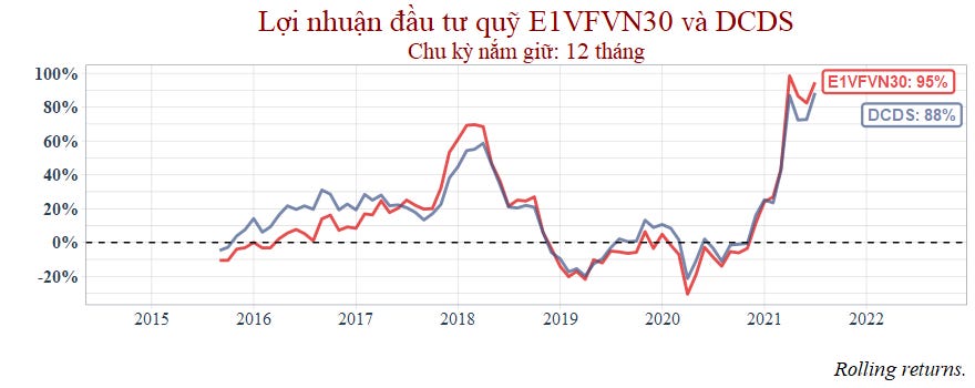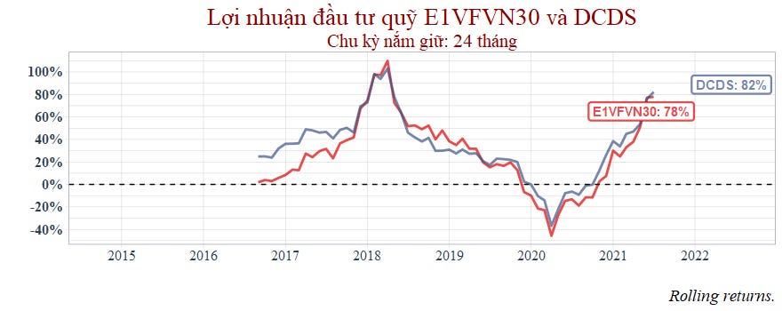 Mặc dù đây là dữ liệu trong quá khứ, không thể dùng có để phán đoán tương lai tuy nhiên theo bài viết Đầu tư quỹ mở cổ phiếu: Chạy theo lợi nhuận trong quá khứ? mà tôi từng viết thì các quỹ như DCDS này lại có lịch sử đánh bại thị trường liên tục mà không hề có dấu hiệu "yếu" đi.