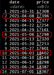 Tôi sẽ sử dụng giá của ngày đầu tiên trong tháng (của tệp dữ liệu) và đặt cho nó là giá của chứng chỉ quỹ trong tháng đó. Kết quả được như sau:
