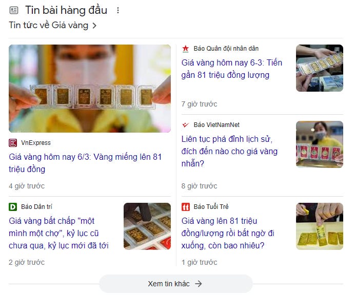 3 tháng đầu năm nay, giá vàng là một chủ đề hot mà báo chí liên tục đăng tải với tựa đề: "Giá vàng tăng sốc", "Giá vàng hôm nay tăng x triệu, lập đỉnh mới"... kèm theo đó là hình ảnh mọi người rủ nhau đi mua vàng.