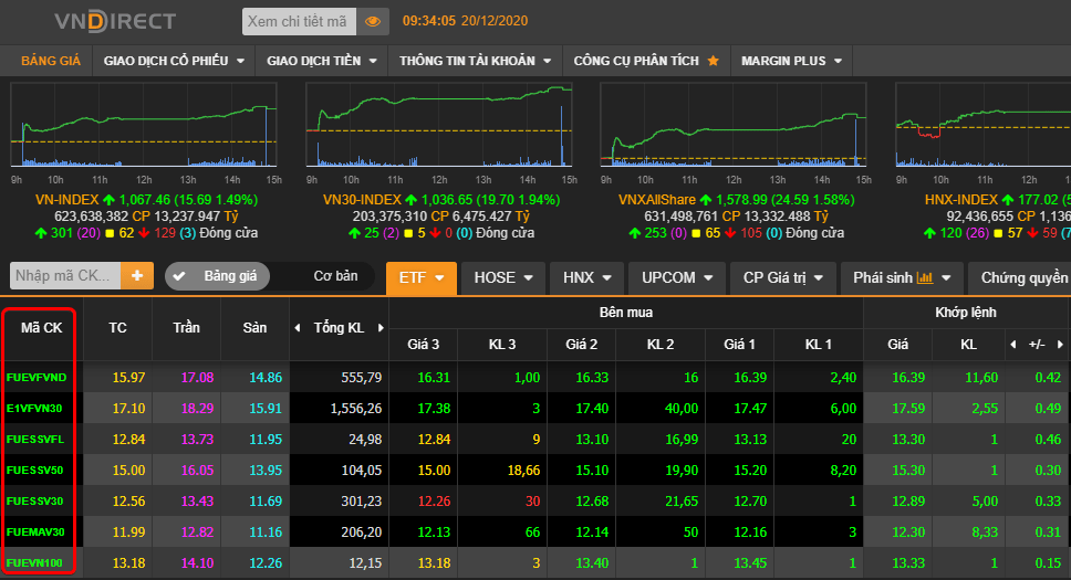 Riêng với ETF, nhà đầu tư có thể mua trực tiếp trên bảng điện. Ví dụ như trên VnDirect: