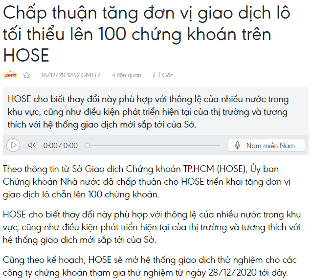 Nếu không có vấn đề gì xảy ra thì nhà đầu tư nhỏ lẻ sẽ phải mua tối thiểu 100 cổ phiếu mỗi lần giao dịch trên HOSE bắt đầu vào năm 2021.