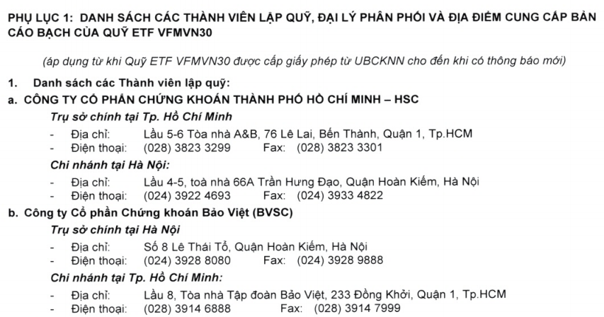 Quỹ ETF VFMVN30 (VFM) : mã E1VFVN30. Mô phỏng chỉ số VN30