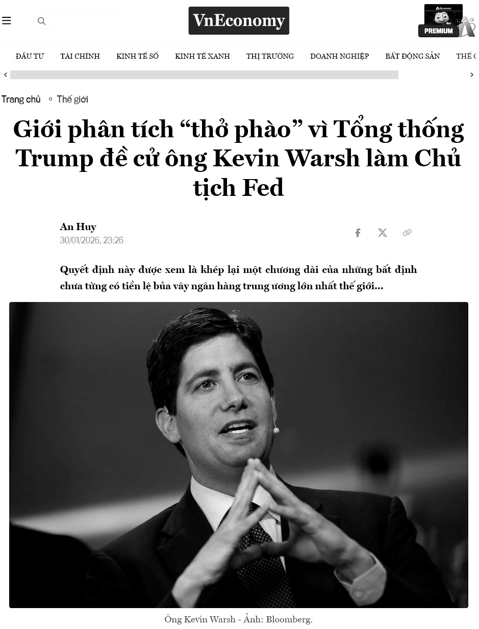 2 ngày trước báo VnEconomy đăng bài: https://vneconomy.vn/gioi-phan-tich-tho-phao-vi-tong-thong-trump-de-cu-ong-kevin-warsh-lam-chu-tich-fed.htm