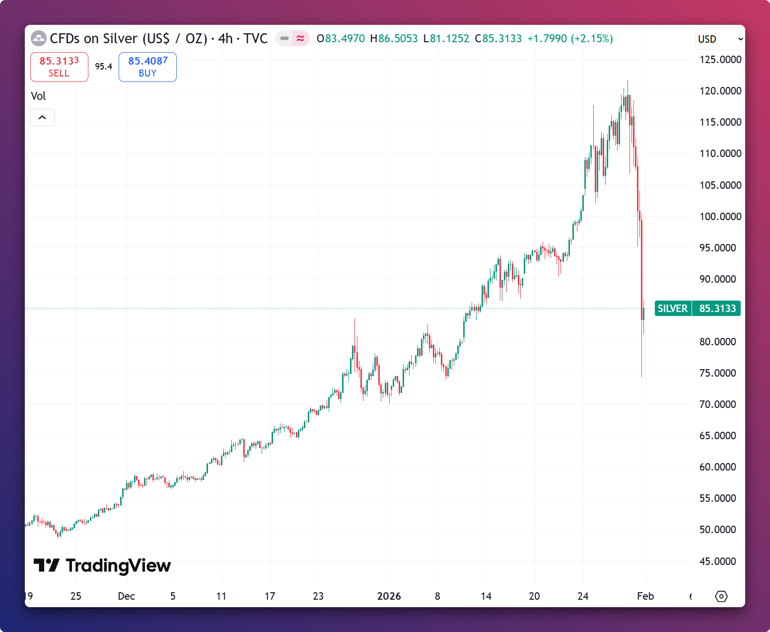 Nó nhắc nhở chúng ta rằng tâm lý thị trường có thể đảo chiều bất thình lình. Mặc dù thị trường chứng khoán và tín dụng (Mỹ) vẫn chưa rơi vào tình trạng căng thẳng nhưng quy mô biến động cực lớn của nhóm kim loại quý chính là một phát súng cảnh báo cho chúng ta. Trong một môi trường mà bị chi phối bởi các yếu tố chính trị, đòn bẩy lớn và sử dụng thuật toán để giao dịch thì sự ổn định có thể biến mất trong chớp mắt.