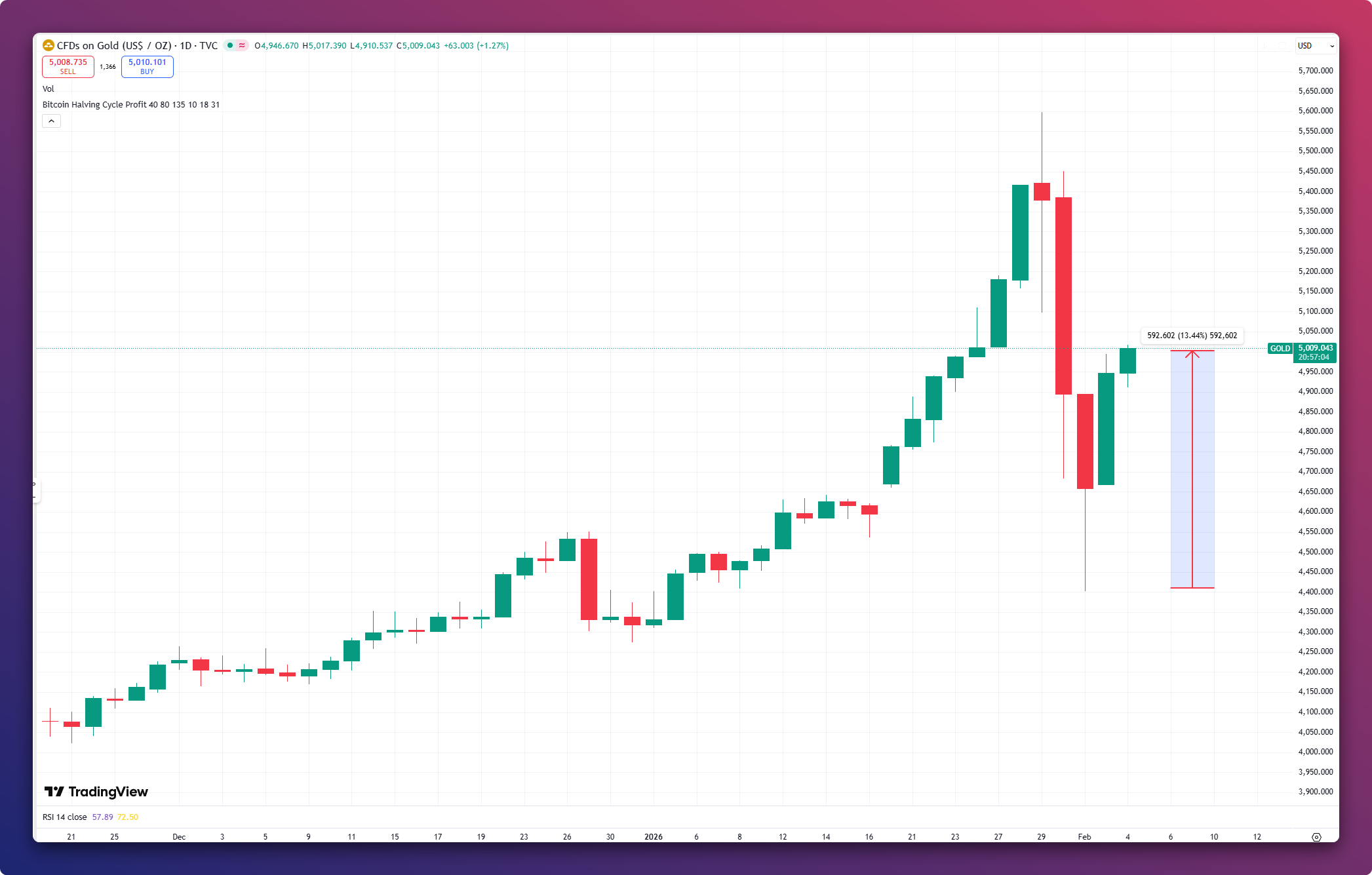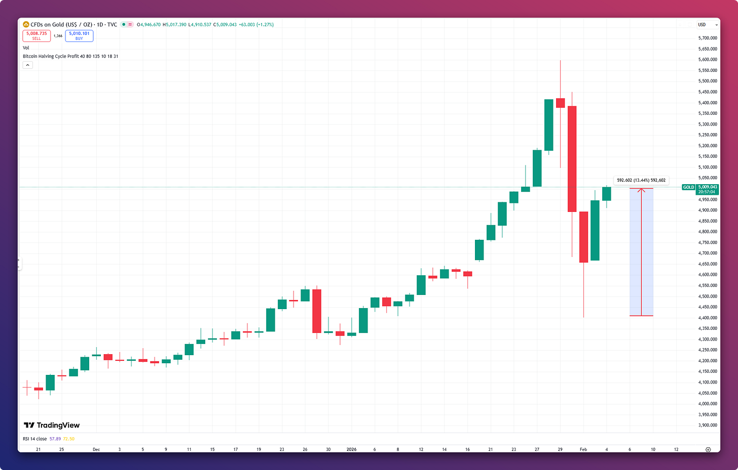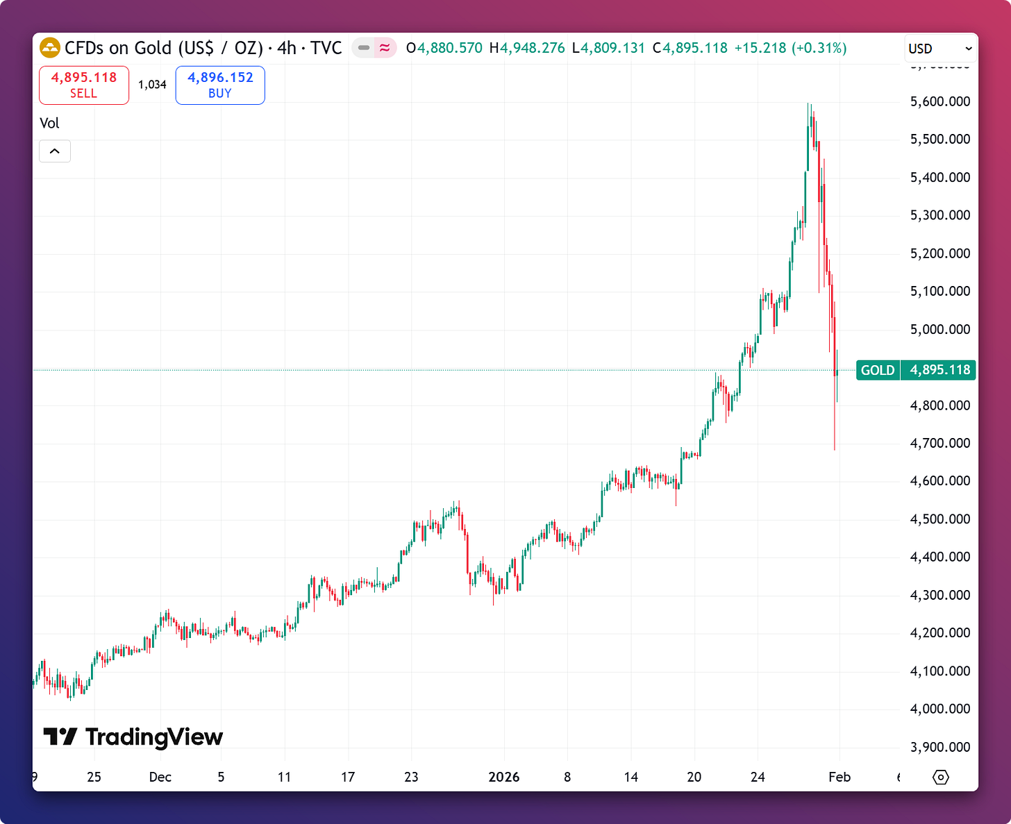 Hai: Sau đà tăng mạnh năm 2025 và đầu năm nay. Vàng cần nghỉ ngơi. Đợt dip vừa rồi là dấu hiệu của việc chốt lời diện rộng (và cắt lỗ). Vàng sẽ đi ngang 4800-5300.