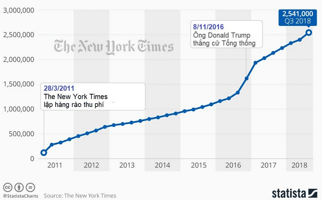 Về NYT thì kết năm 2018, doanh thu từ digital là 709 triệu độ, tăng trưởng doanh thu từ subscribe là 17.7%, có tổng cộng 3.4 triệu subscribers.