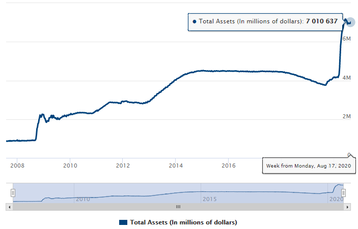 Balance sheet của FED đã tăng từ 4,2 ngàn tỷ đô-la lên 7 ngàn tỷ đô-la bắt đầu từ cuối tháng 02 năm 2020, tăng trưởng hơn 66%.