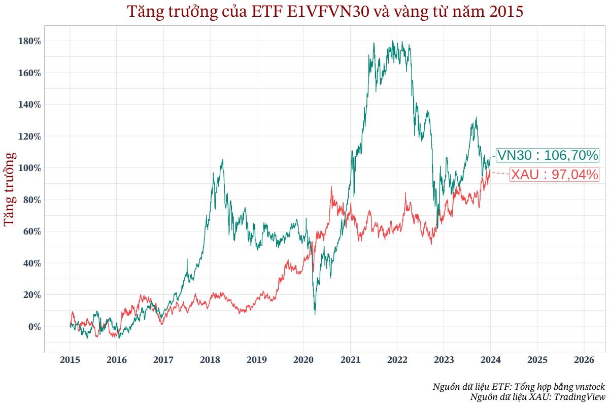 2 - So sánh ETF E1VFVN30 và giá vàng