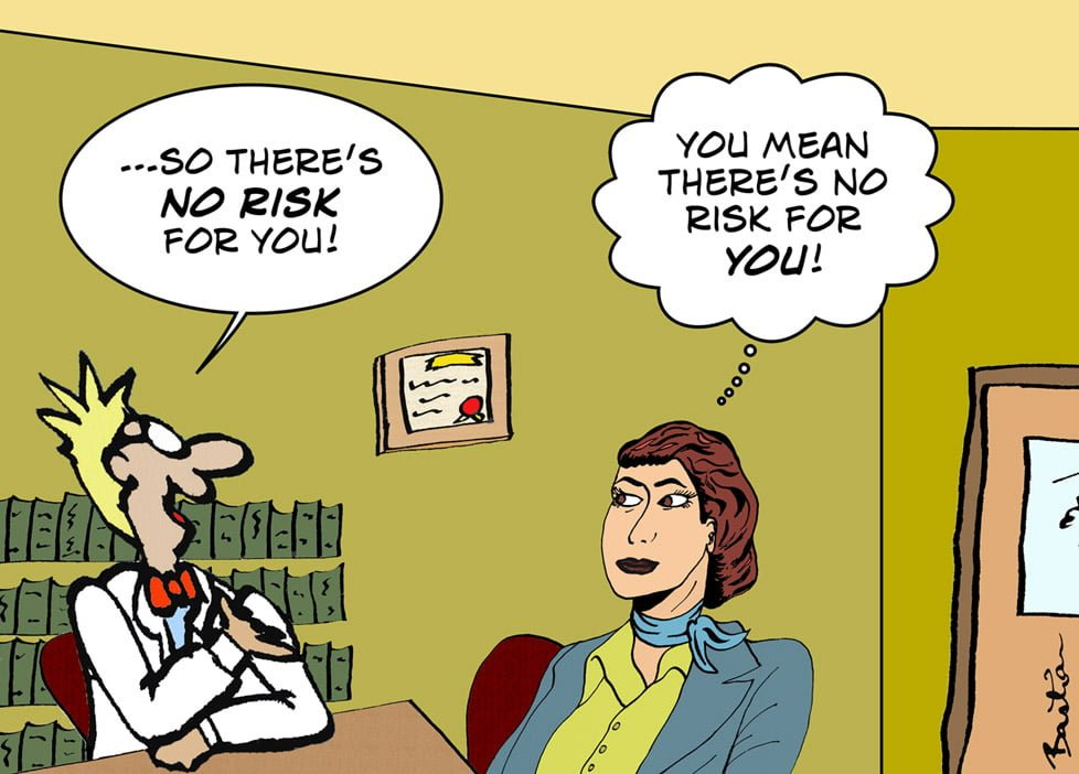 Đầu tư vào chúng tôi hoàn toàn không có rủi ro và bạn nên tin điều đó! Tôi nói vậy liệu có phải nhận xét quá đáng với những người học rộng, có bằng cấp cao không? Không, vì tương lai là một thứ không ai biết trước được, chẳng ai biết ngày mai khủng hoảng kinh tế, chiến tranh thương mại sẽ diễn ra thế nào cả. Những người quản lý quỹ cũng là con người, tâm lý luôn dao động trước những khó khăn và buộc mình phải cắt lỗ khi thị trường gặp khủng hoảng. Quản lý quỹ còn gặp rủi ro nhiều hơn nhà đầu tư nhỏ lẻ vì họ phải quản lý một lượng tiền rất lớn, không thể bán bừa bãi và nhiều lúc còn bị áp lực bán tháo do khách hàng đồng loạt rút tiền khi thị trường gặp khủng hoảng. Cho nên những đợt sụt giảm mạnh đều do một quỹ nào đó đem bán một lượng lớn cổ phiếu. Standard Chartered chịu lỗ 12 năm khi đầu tư vào ACB, Thua lỗ, quỹ đầu tư nội địa tháo lui ... ngoài ra còn nhiều bài viết khác bạn có thể tìm thêm trên Google. Điều đó cho thấy rằng không phải cứ mở quỹ là đầu tư chắn chắn thành công. Gần đây nhất: Billionaire Bill Ackman Sells Disastrous Valeant Investment After Nearly $4 Billion Loss