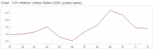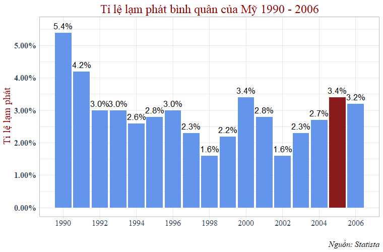 Lạm phát trung bình tại Mỹ năm 2005 khá cao, rơi vào khoảng 3.4%.