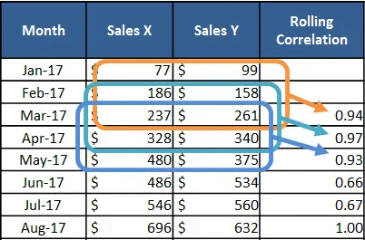 Hệ số tương quan mà tôi tính sẽ là hệ số tương quan với chu kỳ 6 tháng (tương đương 180 ngày) giữa giá vàng và Dollar Index. Có nghĩa là tôi sẽ sử dụng dữ liệu của tháng 1 đến 6 năm 2000 để tính hệ số tương quan cho tháng 6 năm 2000. Và sử dụng dữ liệu tháng 2 đến tháng 7 để tính toán cho tháng 7 năm 2000.