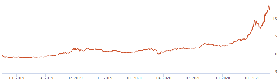 Năm 2019 danh mục vàng + tiền ảo tăng trưởng nhờ vàng. Thì năm 2020 và đầu năm 2021, ván cược mà tôi cược năm 2018 đã mang lại kết quả sau hơn 2 năm trời. Bây giờ chiếm tỷ trọng lớn trong danh mục này là Bitcoin (75%), trong khi đó hồi xưa vàng chiếm 60% danh mục.