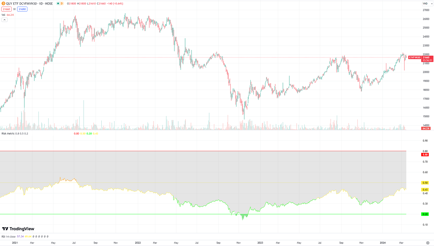 Quay ngược lại năm 2022 khi tôi liên tục viết bài về việc mua trong Bear Market. Tôi lấy ví dụ bằng cách áp dụng vào ETF E1VFVN30 như sau: