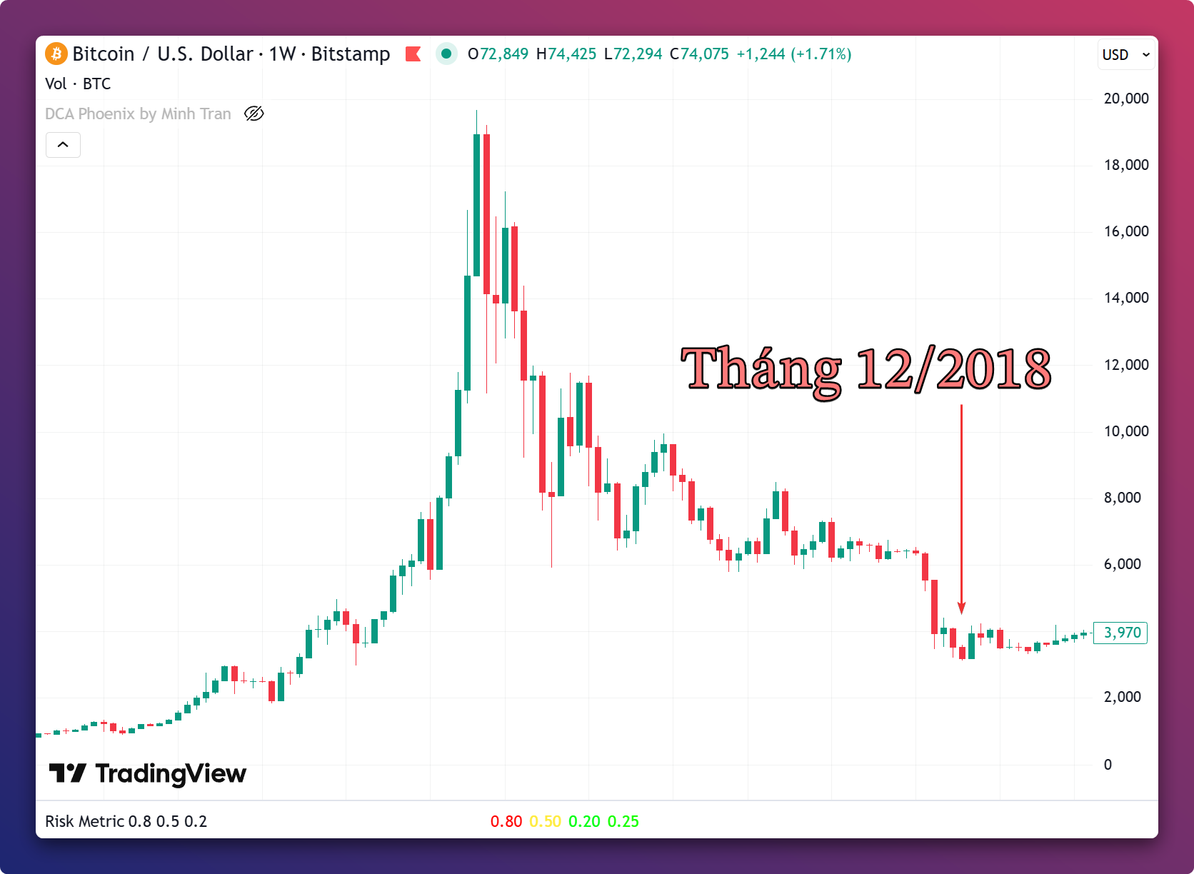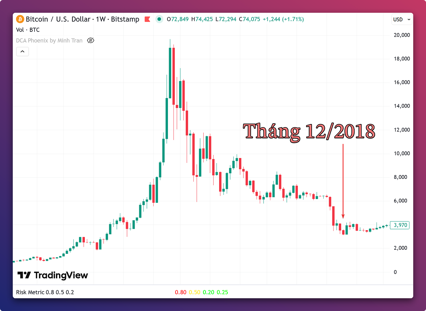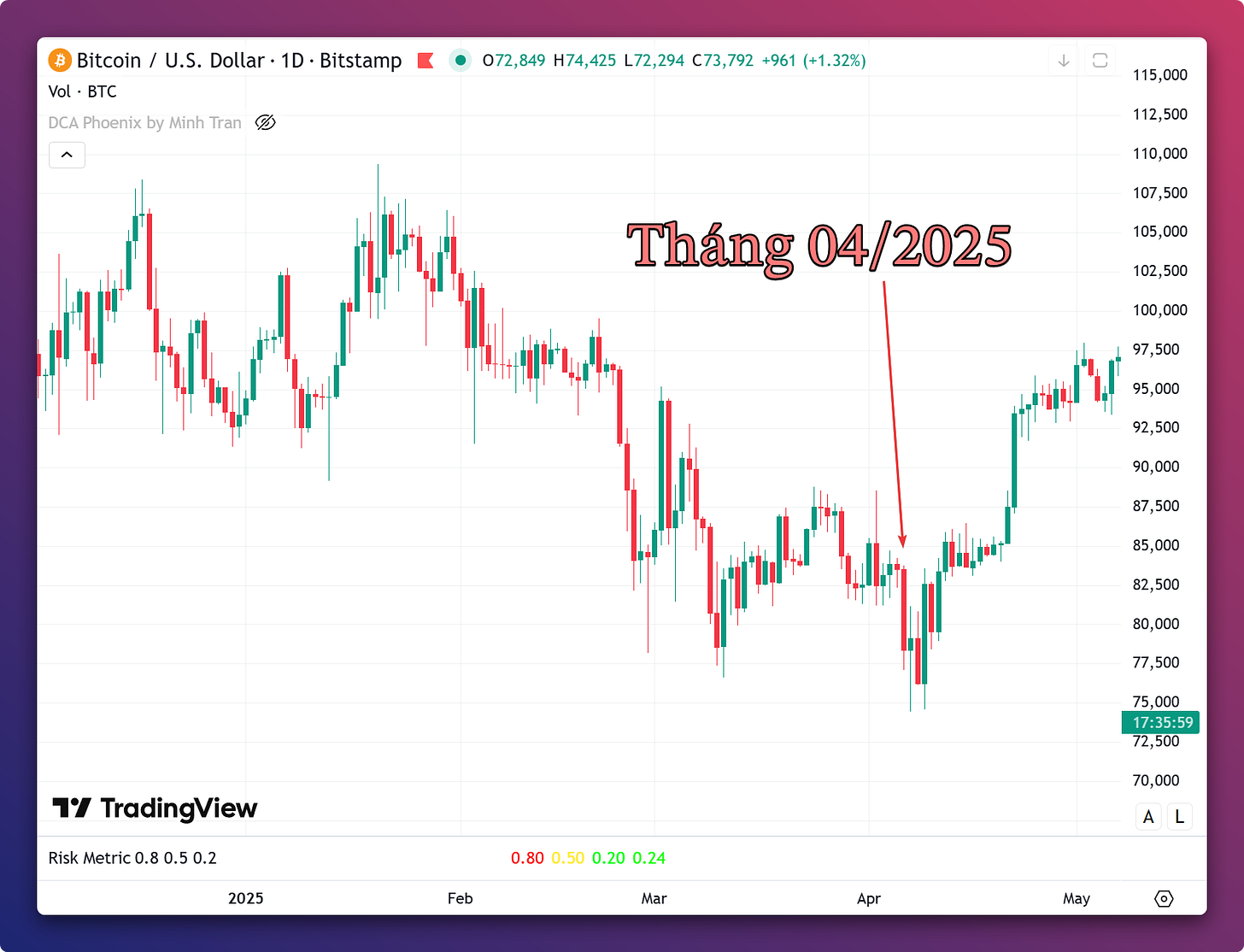 Thời kỳ ông Trump đòi áp thuế quan nhưng tôi cho rằng đó là lúc để đầu tư tốt nhất (thời gian này tôi không có Bitcoin vì chuyển sang mua cổ phiếu nhưng ý nghĩa cũng tương tự).