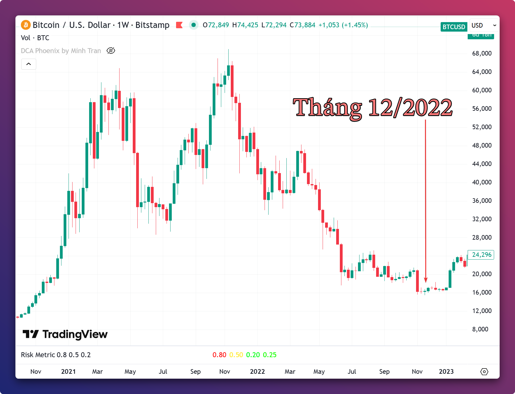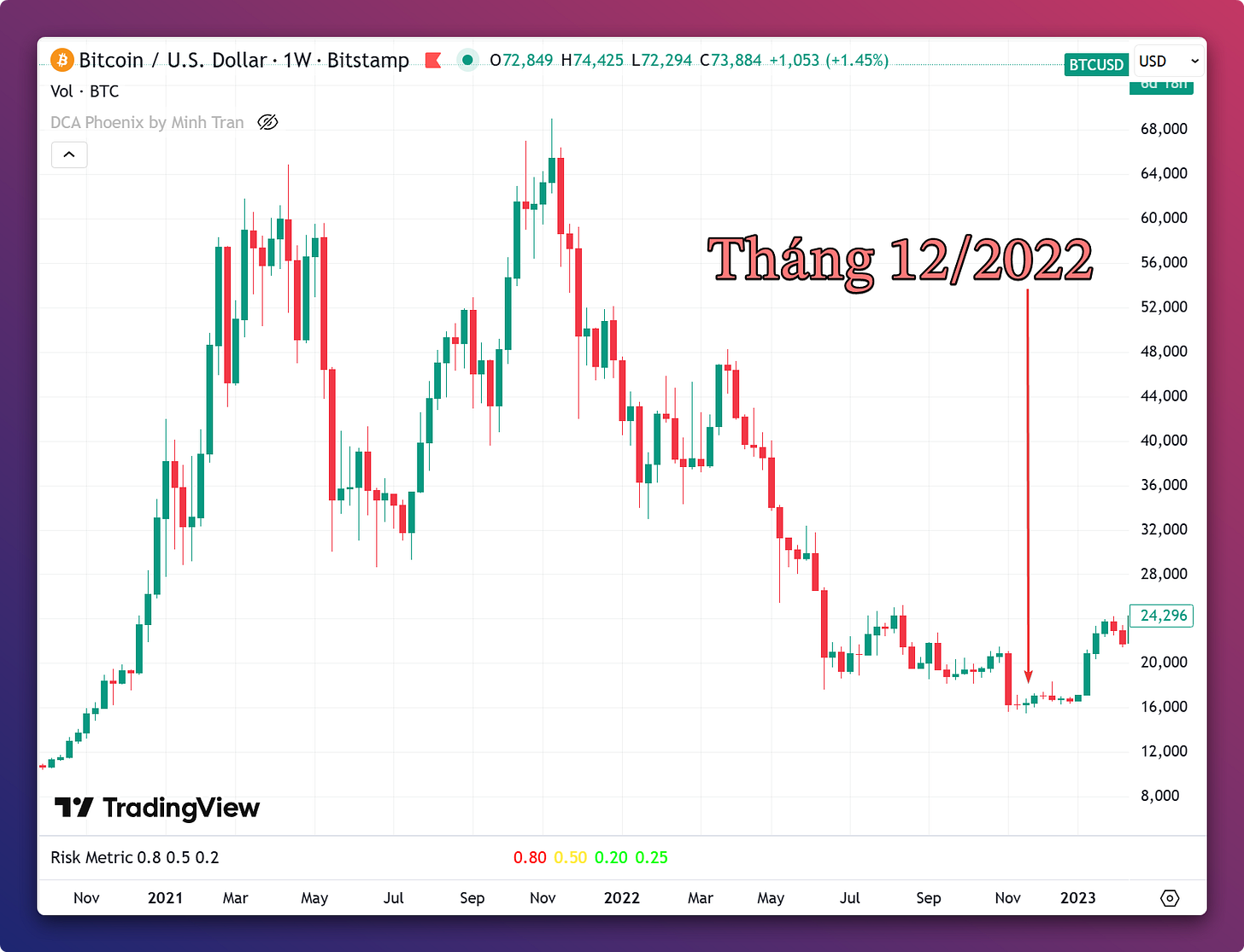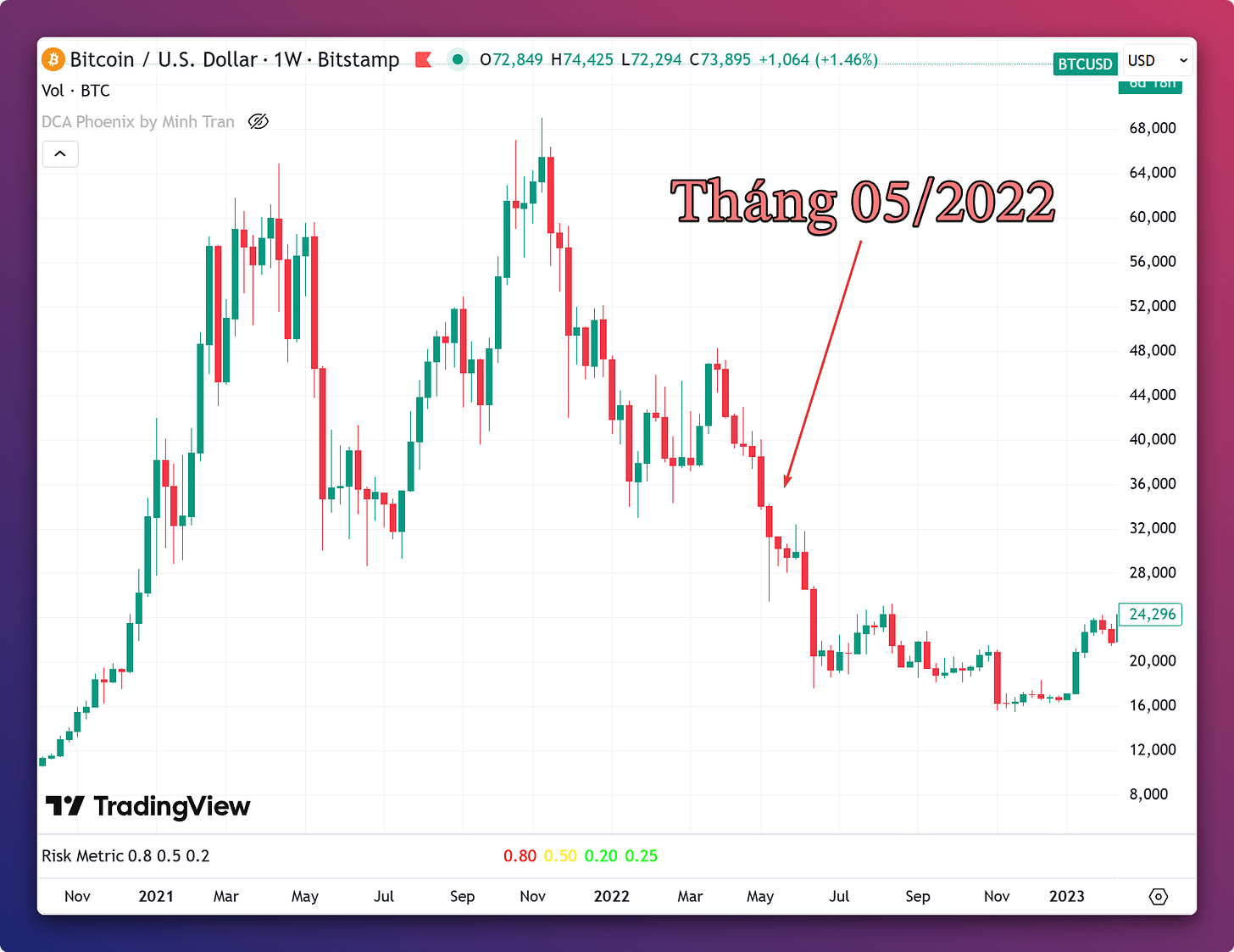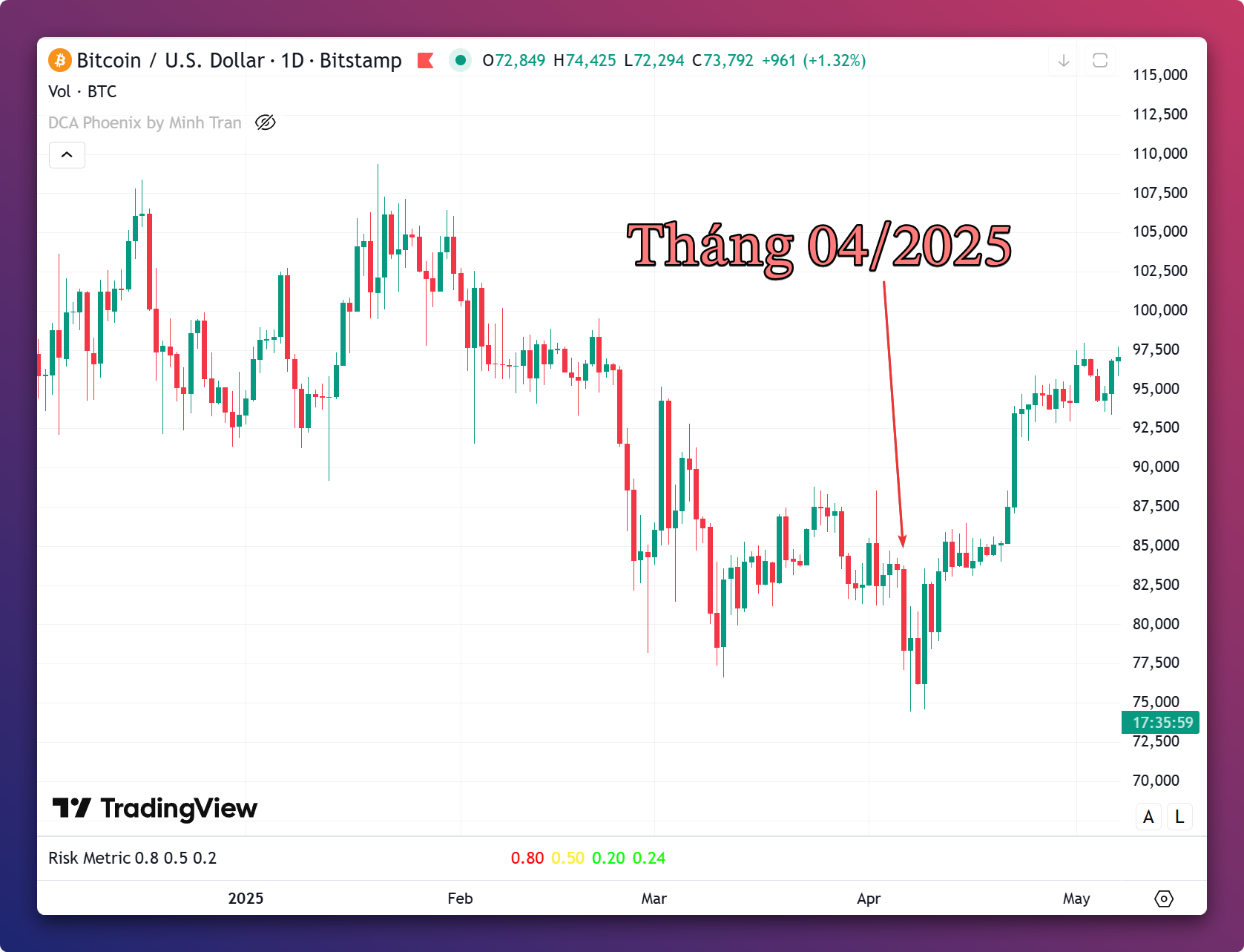 Thời kỳ ông Trump đòi áp thuế quan nhưng tôi cho rằng đó là lúc để đầu tư tốt nhất (thời gian này tôi không có Bitcoin vì chuyển sang mua cổ phiếu nhưng ý nghĩa cũng tương tự).