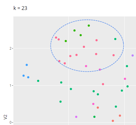 Chúng ta có thể thấy được rằng việc sử dụng thông tin biến động giá cổ phiếu trong ngày có thể giúp phân loại được một vài ngành. Dễ nhận biết nhất là ngành tài chính màu vàng, với nhóm ngân hàng và chứng khoán. Cổ phiếu họ nhà P, hai cổ phiếu HAG + HNG và nhóm "cổ phiếu Đông Âu".
