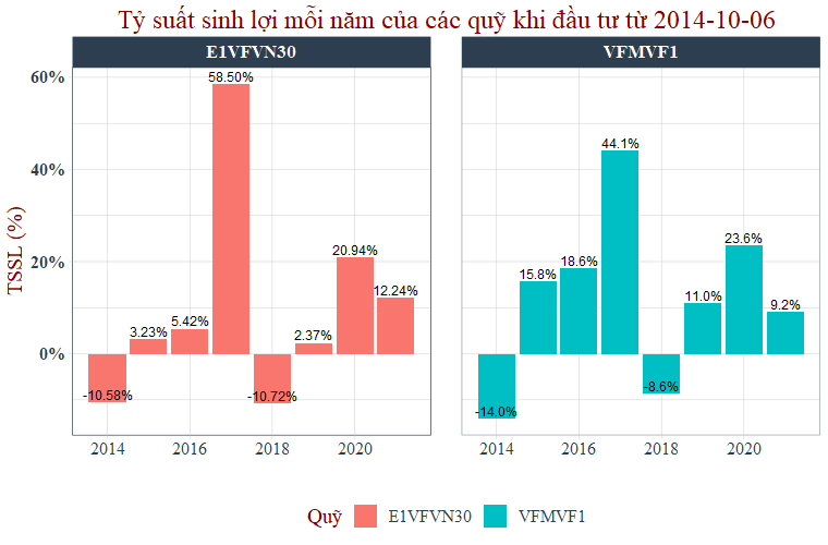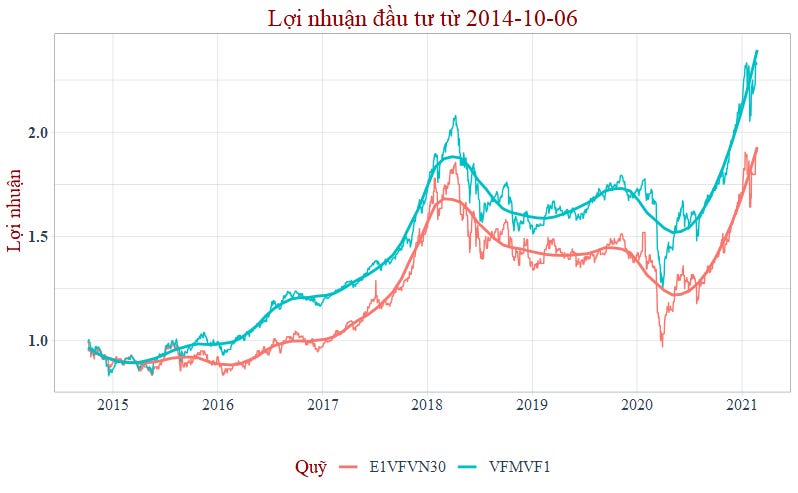 Và như kết quả đã phân tích tại bài viết cũ, ta thấy rằng VFMVF1 rất hiệu quả (2016 -> 2020). Nay tôi đi sâu hơn một chút về các quỹ này.