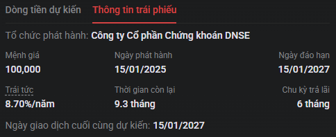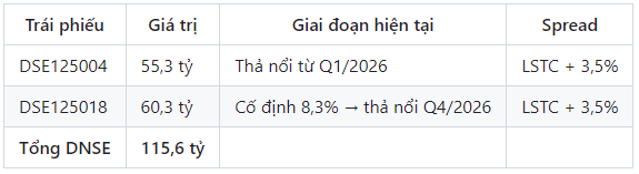 DSE125004 (55,3 tỷ): đáo hạn 15/01/2027. Tại thời điểm phân tích, trái phiếu này đã ở giai đoạn thả nổi, đang trả coupon 8,7%/năm.