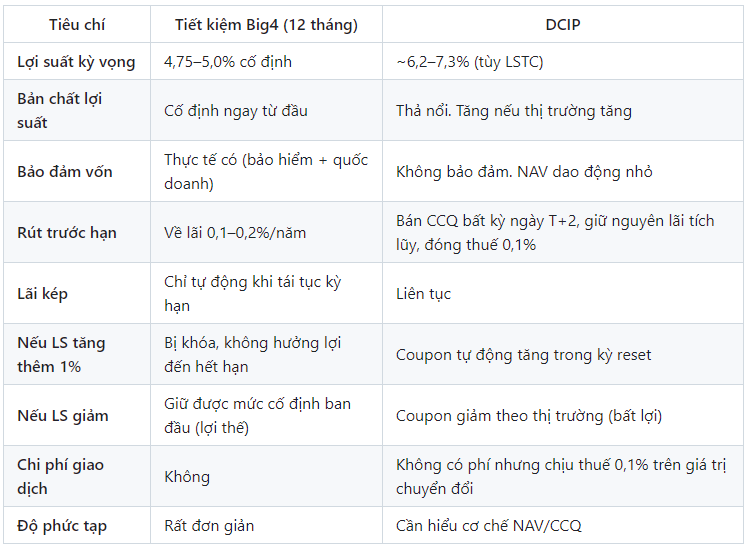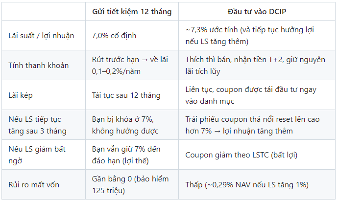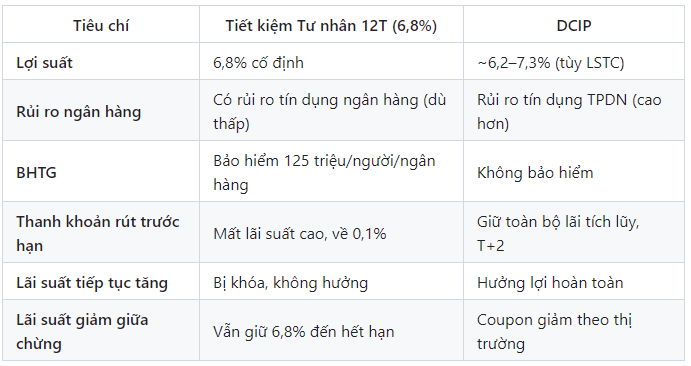 DCIP chỉ vượt trội hơn gửi tiết kiệm ngân hàng tư nhân nếu lãi suất tăng thêm hoặc nhà đầu tư cần rút tiền.