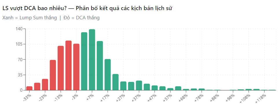 Như bài viết cũ tôi từng viết năm 2021 về việc “Chứng chỉ quỹ ETF, mua từng tháng hay “all-in”?” Dù dữ liệu tính toán ra con số rất đẹp, mọi thứ đều ủng hộ cho việc phương pháp all in, nhưng mà tôi khuyên bạn là ở Việt Nam thì chúng ta nên DCA cho dù thị trường có tốt đến đâu đi chăng nữa.