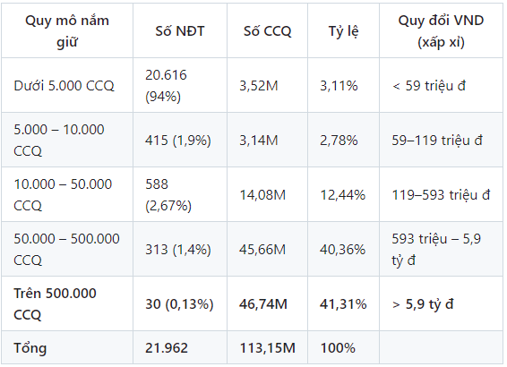 30 nhà đầu tư lớn nắm 41% tổng quỹ ~ 554 tỷ.