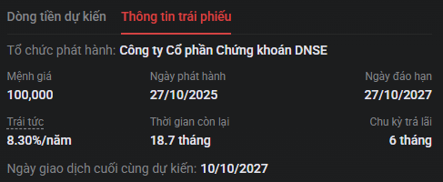 DSE125018 (60,3 tỷ): phát hành 27/10/2025, đáo hạn 27/10/2027. Năm đầu cố định 8,3%, từ 27/10/2026 chuyển sang LSTC + 3,5%.