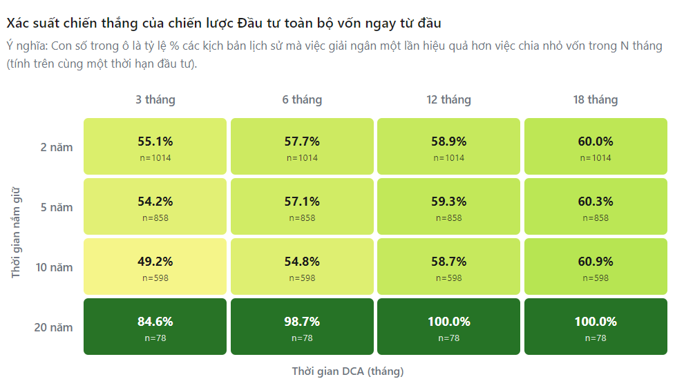 Ví dụ, ô 2 năm - 18 tháng (ở góc trên bên phải) = 60%. Chúng ta sẽ hiểu là nhà đầu tư này phân vân: