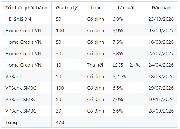 Tháng 04/2026: 10 tỷ chứng chỉ tiền gửi Home Credit đáo hạn → tái đầu tư