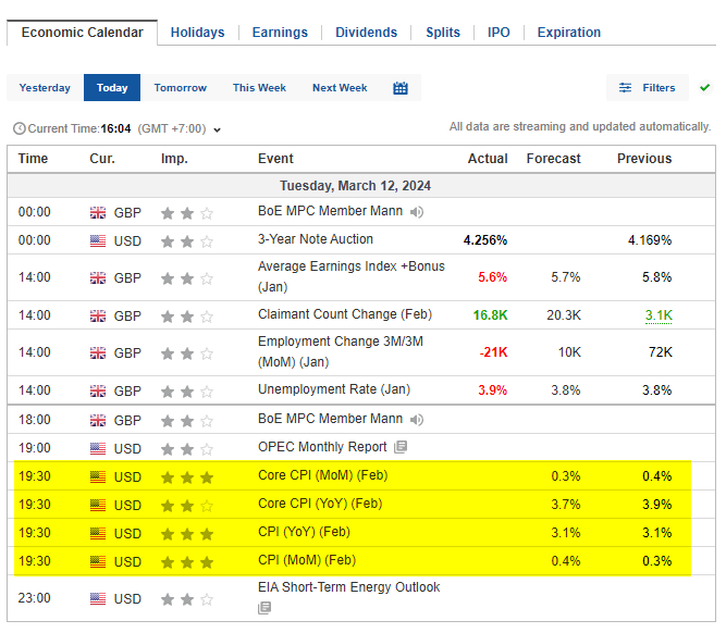 Ví dụ tối nay ngày 12/03 sẽ có thông báo về CPI của Mỹ.