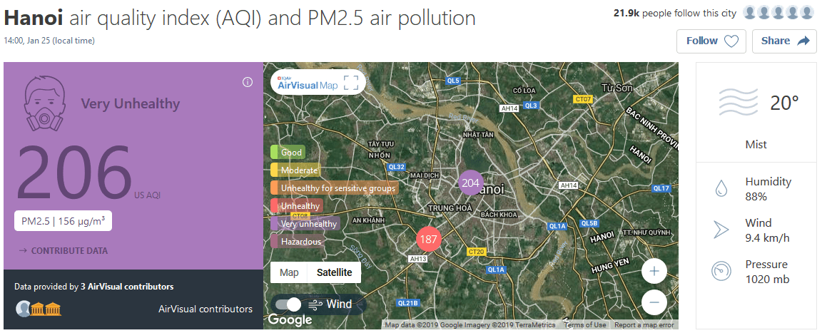 Tiếp theo là một số liệu hay ho về cái ô nhiễm không khí này: