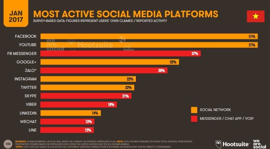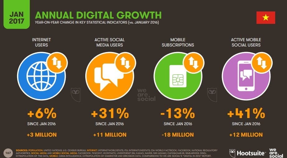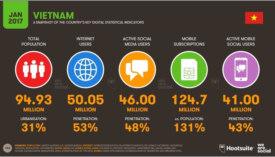 Theo số liệu thống kê năm 2017, tổng dân số ~94 triệu dân và lượng người dùng internet hiện nay là ~50 triệu người tăng 6% (~3 triệu người) so với năm 2016. Trong đó lượng người sử dụng mạng xã hội là 46 triệu người, chiếm 48% tổng dân số, tăng 31% (~11 triệu người) so với năm 2016.